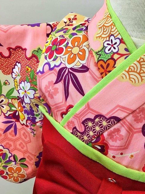 香川県M.K様 ご注文品(着物風カバーオール)≪彩華物語・亀甲(ピンク)×エンジ≫