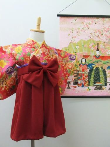 福島県T.K様 ご注文商品(着物風カバーオール)≪花鞠鶴(濃ピンク)×エンジ≫