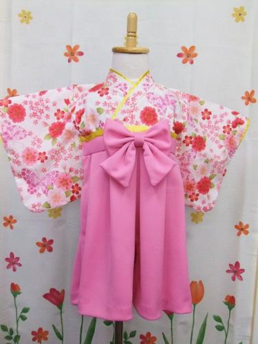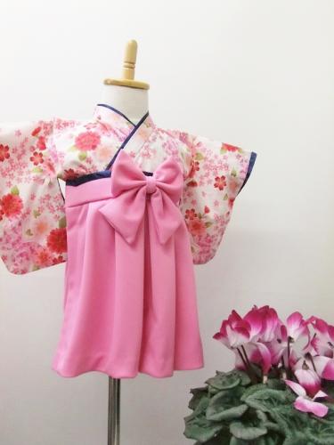 京都府F.A様 ご注文品(着物風カバーオール)≪桜とリボン(白)×明ピンク≫
