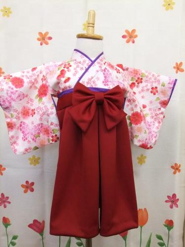 埼玉県M.M様 ご注文品(着物風カバーオール)≪桜と蝶(白)×エンジ≫