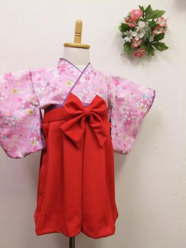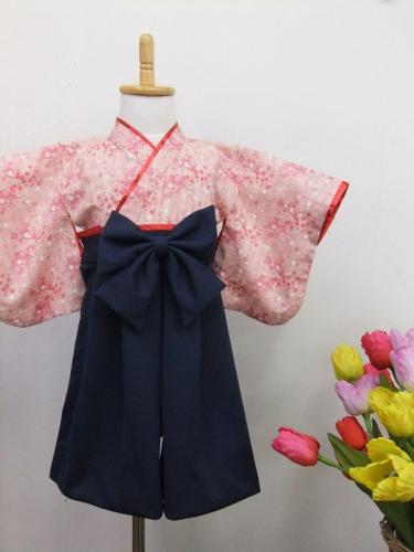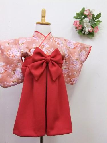 兵庫県M.Y様 ご注文品(着物風カバーオール)≪桜柄とリボン(ピンク)×赤≫