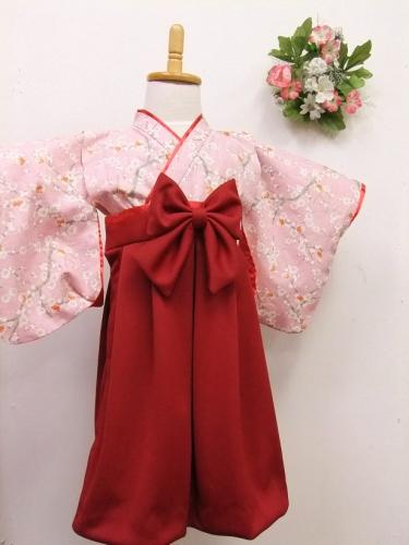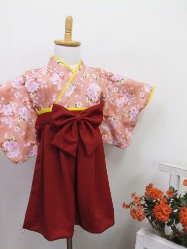 A.Y様 ご注文品(着物風カバーオール)≪梅柄(ピンク)×エンジ≫