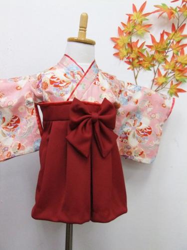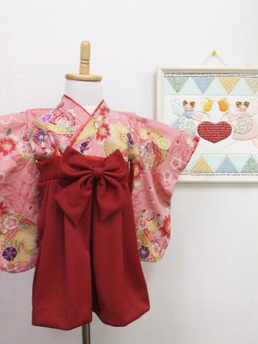 東京都S.K様ご注文品(着物風カバーオール)≪桜と鞠(ピンク)×エンジ≫