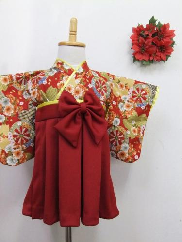 大阪府T.E様 ご注文品(着物風カバーオール)≪花車あそび×エンジ≫