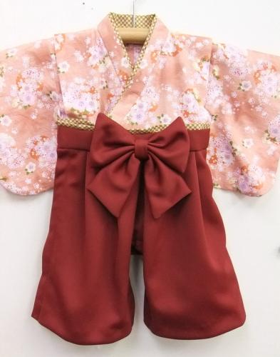 和歌山県M.T様 ご注文商品(着物風カバーオール)≪桜としぼり柄(ピンク)×エンジ≫