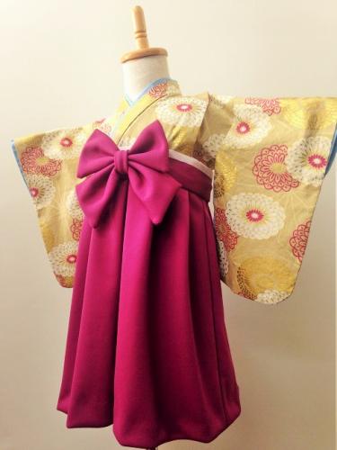 神奈川県T.K様 ご注文商品(着物風カバーオール)≪丸菊模様(ベージュ)×赤紫≫