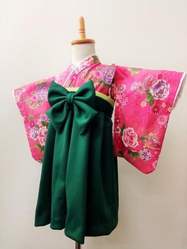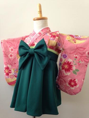 茨城県I.Y様 ご注文商品(着物風カバーオール)≪鼓と扇と花模様(ピンク)×深緑≫