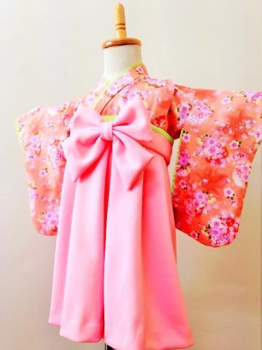 宮城県S.S様ご注文商品(着物風カバーオール)≪着物風彩花柄(ピンク)・綿ちりめん×朱≫