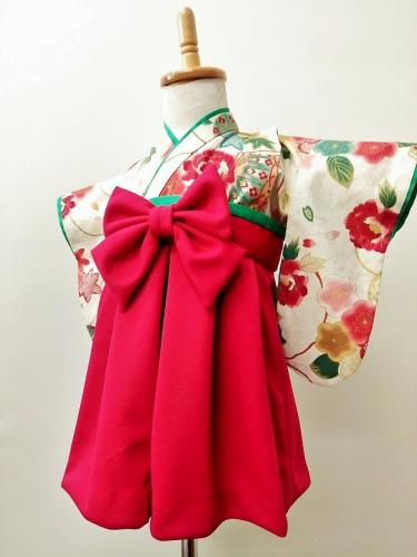 福岡県N.S様 ご注文商品(着物風カバーオール)≪花束に鞠(クリーム)×赤≫