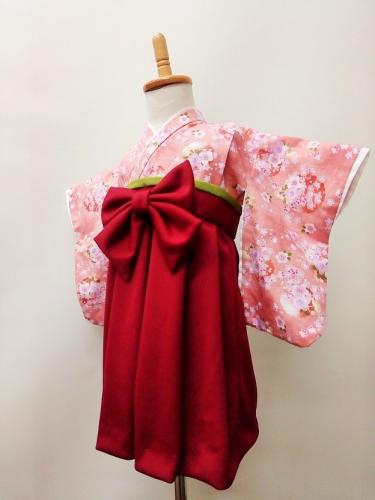 京都府H.H様 ご注文品(着物風カバーオール)≪桜としぼり柄(ピンク)×エンジ≫