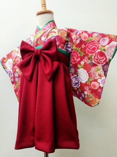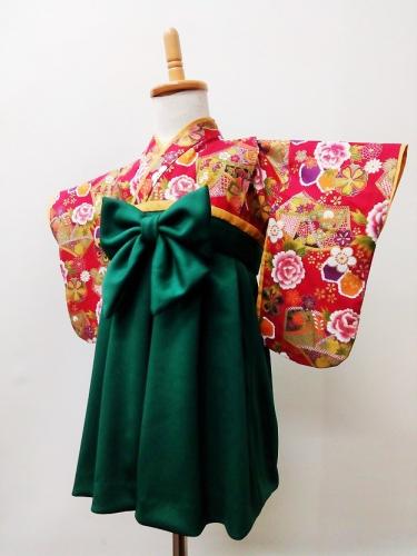香川県M.T様 ご注文品(着物風カバーオール)≪菊扇(赤)×深緑≫