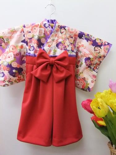 神奈川県K.M様ご注文品(着物風カバーオール)≪桜と鞠(ピンク)×赤≫