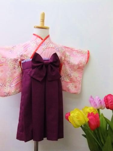 神奈川県I.R様 ご注文商品(着物風カバーオール)≪桜流し文様(ピンク)×紫(綿)≫