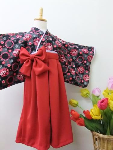埼玉県F.Y様 ご注文商品(着物風カバーオール)≪花束に鞠(黒)×エンジ≫