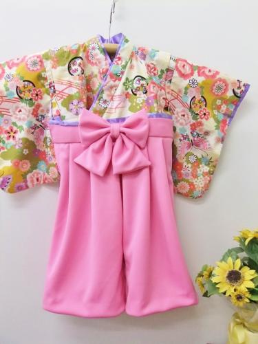 福岡県K.T様 ご注文商品(着物風カバーオール)≪牡丹・蝶に太鼓橋(緑)×明ピンク≫