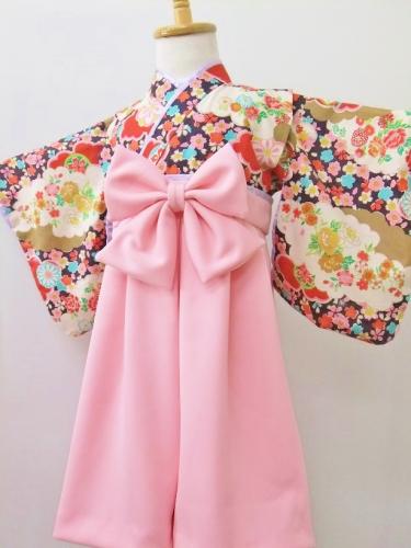 兵庫県A.S様 ご注文商品(着物風カバーオール)≪花車と菊(ピンク)×エンジ≫