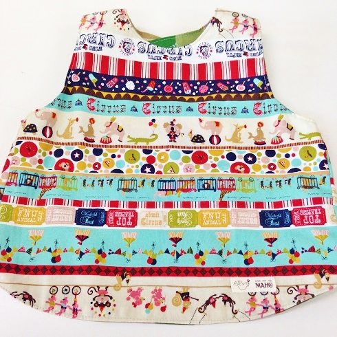 ベスト型スタイ 80〜90cm(サーカス柄×ブロックチェック)