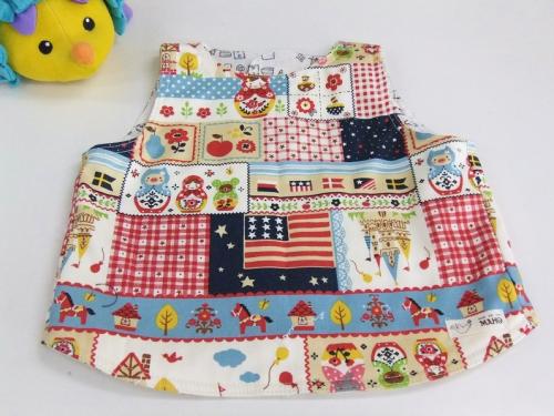 ベスト型スタイ 80〜90cm(パッチ風マトリョーシカ×ランドリー)