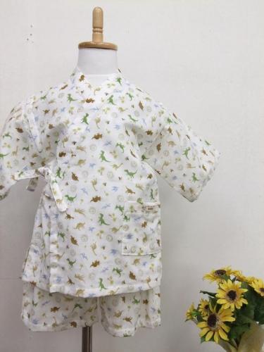 ダブルガーゼ甚平 110cm(恐竜・ホワイト)