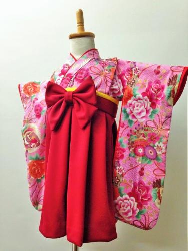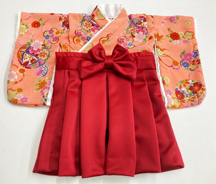 沖縄県S.Y様 ご注文品(着物風カバーオール)≪紗綾型に花模様(ピンク)×エンジ≫
