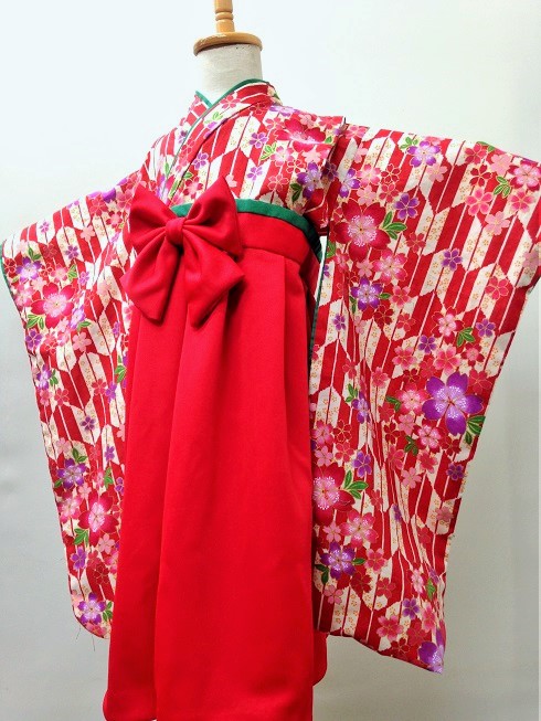 京都府S.K様 ご注文品(着物風カバーオール)≪矢絣桜(赤)×赤≫