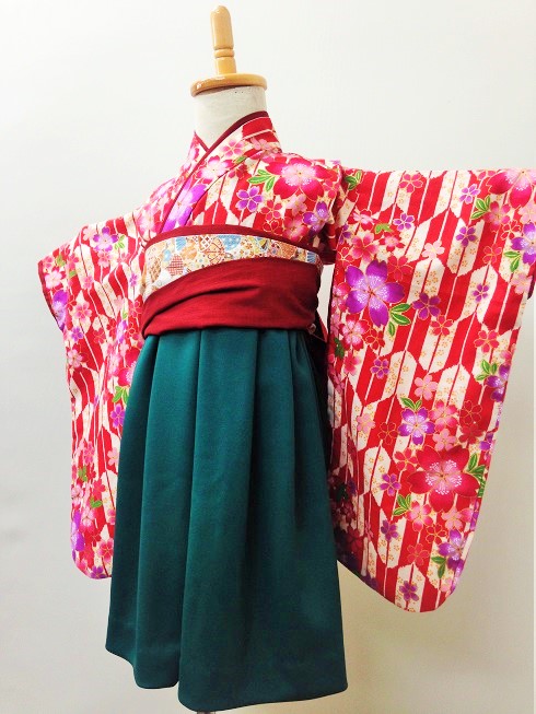 大阪府M.A様 ご注文商品(着物風カバーオール)≪矢絣桜(赤)×深緑≫