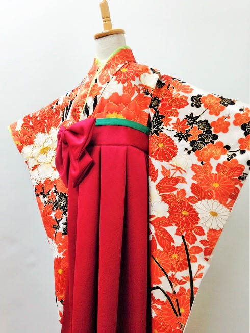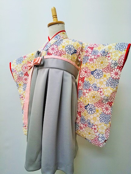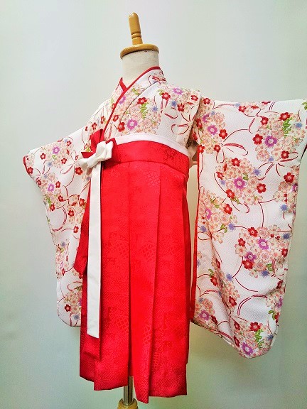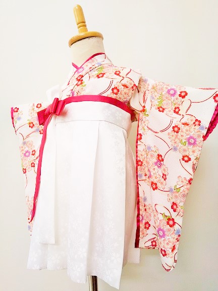 大阪府I.A様 ご注文商品(着物風カバーオール)≪桜結び・白(ちりめん)×菊と扇・赤(綸子)≫