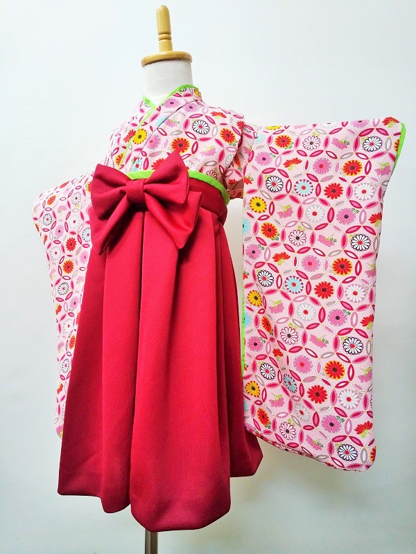 愛知県I.A様ご注文品(着物風カバーオール)≪七宝かこみ菊(ピンク)・ちりめん×エンジ≫