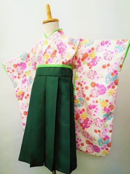 滋賀県S.M様 ご注文品(着物風カバーオール)≪八重桜(正絹生地・持込)×深緑≫