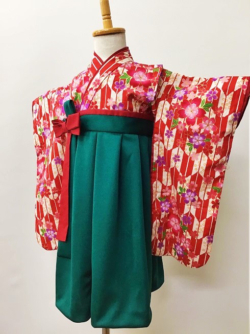 神奈川県W.N様 ご注文商品(着物風カバーオール)≪矢絣桜(赤)×深緑≫