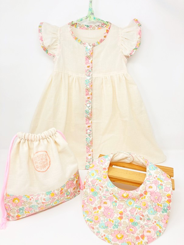 福岡県Y.H様 ご注文商品(着物風カバーオール)≪小花柄×明ピンク≫